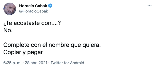 En efecto, Cabak pasó a de ser un "tuitero normal" a convertirse en un "tuitstar" en medio de la cuarentena. La política se fue adueñando de sus opiniones y protagonizó polémicas muy fuertes con cualquiera que rechazara sus fuertes posturas. Algunas, incluso, con insultos, amenazas y hasta promesas de pelea.