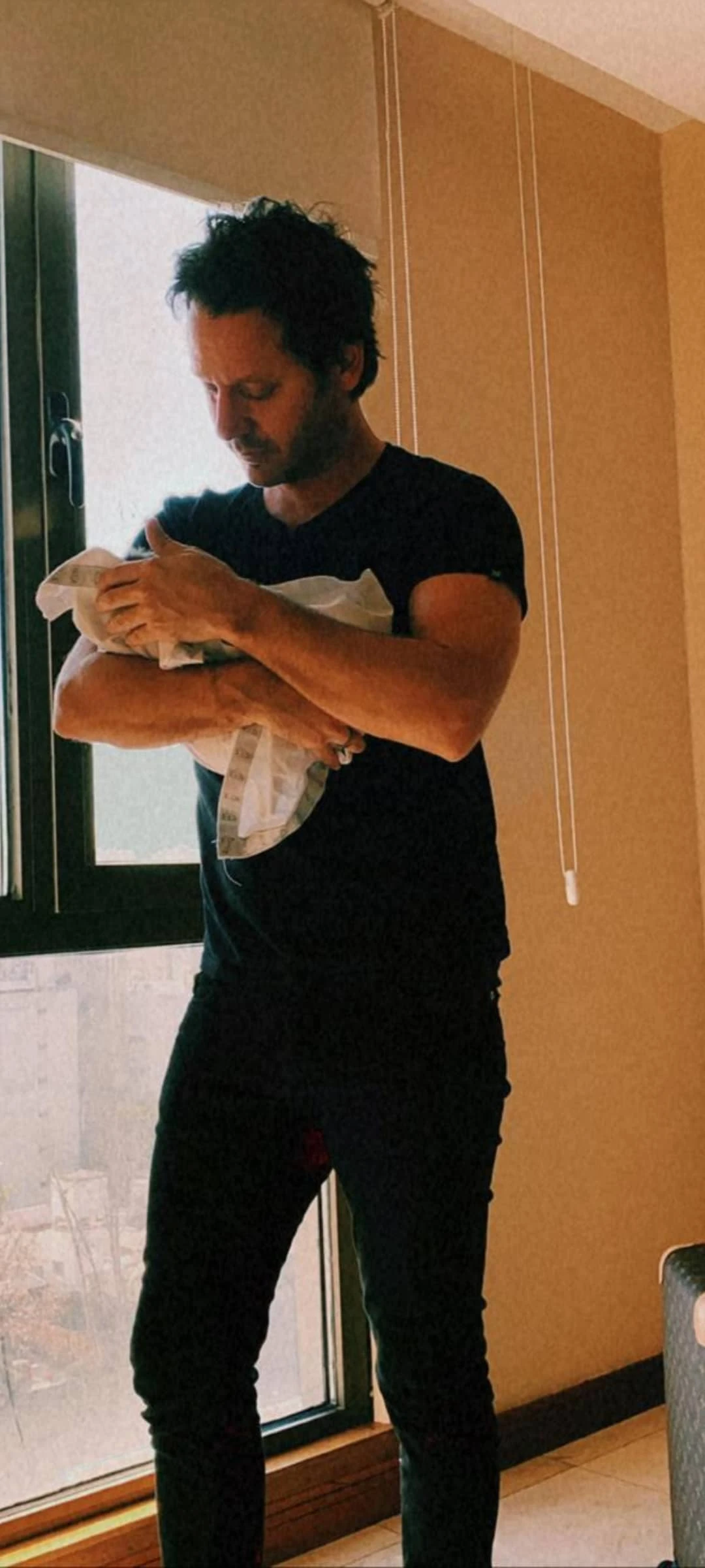Este jueves, Vicuña compartió en sus Stories, la primera foto del bebé. Envuelto en una manta, se puede ver al pequeño en los brazos de su papá.