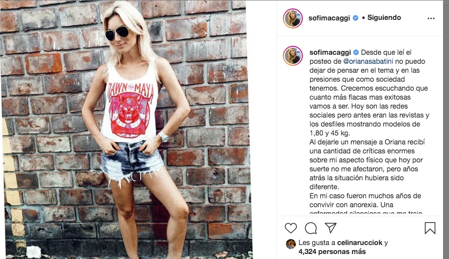 Y fue Sofía Macaggi quien sorprendió al contar que sufrió trastornos alimentarios después de conocerse que Oriana Sabatini luchó y lucha contra la problemática, y en medio de la crítica que las integrantes del espectáculo están haciendo a los cánones estéticos.