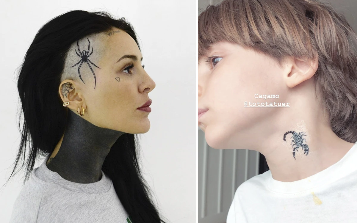Hace poco, Cande mostró el nuevo enorme tatuaje que se realizó en el costado de su cabeza, con el dibujo de una araña gigante que concluye ensamblándose con la telaraña que ya tenía en su oreja.