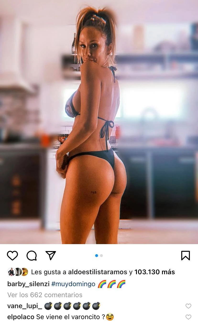 Sin embargo, en esa ocasión bien podría tratarse de un tema postural ya que Barby tiene un lomazo que, hasta hace unas semanas, lo compartió en sus redes sociales luciendo minúsculas bikinis y un abdomen marcado. Es mas, ese mismo catsuit natural lo posteó en su feed y, en ese caso, no aparece tal pancita.