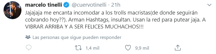 El disparador fue el mensaje de Twitter que publicó el conductor del Bailando, acerca de una investigación por presunto espionaje contra periodistas y políticos que habría tenido lugar durante el gobierno de Mauricio Macri.