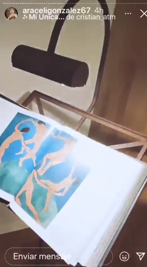 Luego se sumergió en ese living, decorado de manera perfecta, con un tono blanco, nude y tierra. Ahí también lucen obras de arte, como cuadros, y un libro súper top. Araceli narró: "Es un libro que trajimos de New York, ciudad que Fabián y yo amamos, y en, otra época, yo solía colocar este atril en la puerta de casa cuando hacía un evento y alli exponía el menú de esa noche, por ejemplo".