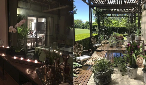 Claro que más allá de todos los detalles del interior, la casa se caracteriza por la conexión con el exterior, pero no se trata de un jardín amplio, sino que una extensión kilométrica de césped, de árboles, de caballeriza, de piscina y plantas y flores.