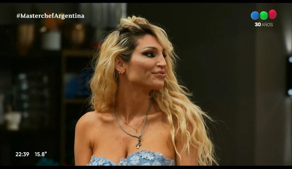 La mediática deslumbró al jurado y a los televidentes al salir a la gran cocina con un espléndido vestido celeste formado por un corset y una falda con muchísimo tul. Sin embargo, luego de escuchar los consejos de Germán Martitegui, y antes de comenzar su trabajo, la modelo optó por cambiar su vestimenta de una llamativa manera.