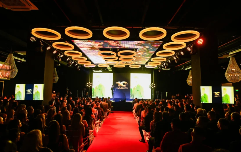 La temática del evento estuvo representada por el paso del tiempo, desde los comienzos de la empresa hasta la actualidad. Desde un enfoque rústico, momentos significativos plasmados en la puesta, historias narradas por personalidades legendarias y estéticas tecnológicas. El dresscode fue de gala, y donde se pudieron ver y apreciar vestidos largos, formales, de brillos y todos los colores.