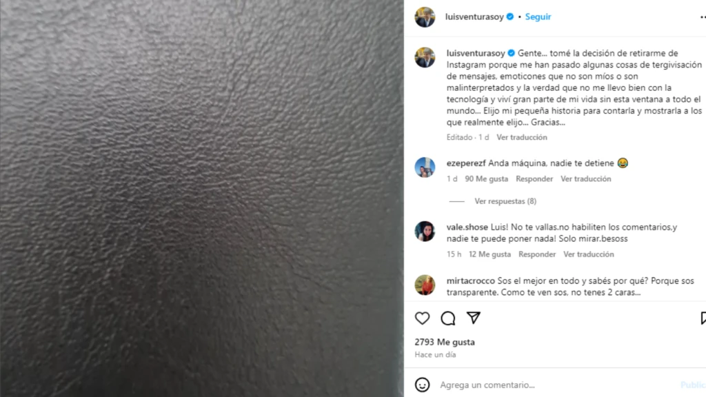 LUIS VENTURA EXPLICÓ LOS MOTIVOS DEL CIERRE DE SUS REDES SOCIALES