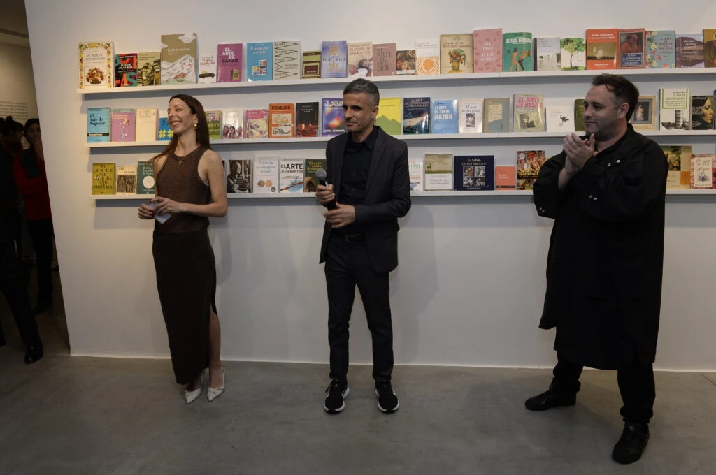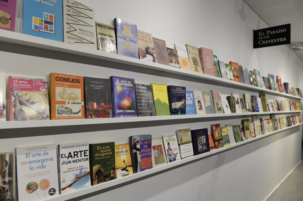 Entre los proyectos más llamativos está El Paraíso de los Creyentes, una biblioteca viva integrada por más de 140 libros reales, todos con títulos que comienzan con “El arte de…”. Desde El arte de prensar flores hasta El arte de coleccionar moscas, esta colección funciona como un retrato irónico, y a la vez entrañable, de nuestras obsesiones por encontrar sentido y orden.