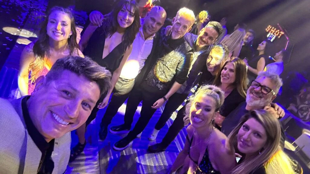 De esa forma, Toti Pasman, Maxi Palma, Fernando Mancini, Fernando Burlando, Germán Paolosky y hasta el mismísimo Fernando Niembro se animaron a tirar pasos junto al emblemático grupo de cumbia. Debajo, viendo el espectáculo también estaban otros compañeros del periodista como Luis Gasulla, Pablo Muney, Barby Franco, Luciana Elbusto, Donato De Santis y Gustavo López.