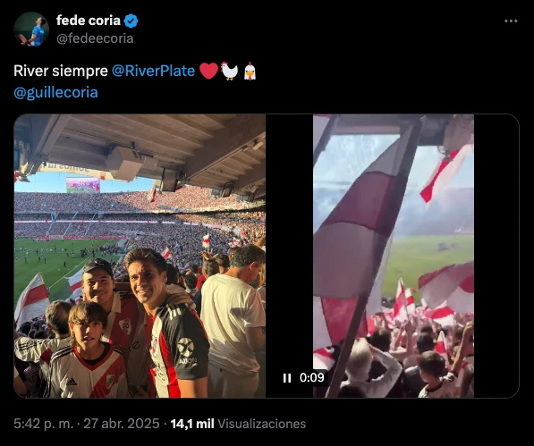 En medio de esto, y de la figura de Gallardo que nuevamente fue el verdugo del Xeneize, algunos famosos también se hicieron presentes en las redes sociales para celebrar una tarde de domingo que sin dudas fue redonda. Varios estuvieron presentes en el Monumental para alentar al Millonario, festejando un nuevo triunfo de su equipo.