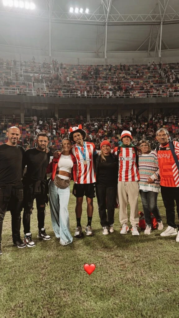 “Estamos en la puerta del estadio. No nos dejan llegar al aeropuerto porque está colapsado el camino… así que me fui a comprar chocolates”, contó la modelo, divertida, a sus seguidores, hacia el final de esa noche llena de adrenalina en la que Eros Mancuso marcó el único tanto que luego fue igualado por Alejo Sarco.