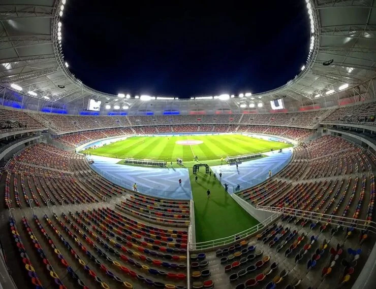 Con una capacidad para 36.000 espectadores sentados, el estadio cuenta con tribunas completamente cubiertas, 22 palcos VIP, un restaurante y un estacionamiento subterráneo con capacidad para 460 vehículos.
