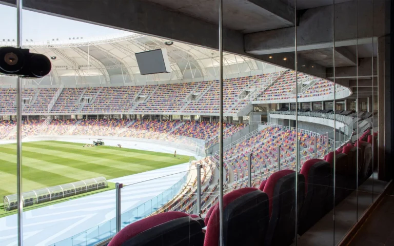 Con una capacidad para 36.000 espectadores sentados, el estadio cuenta con tribunas completamente cubiertas, 22 palcos VIP, un restaurante y un estacionamiento subterráneo con capacidad para 460 vehículos.