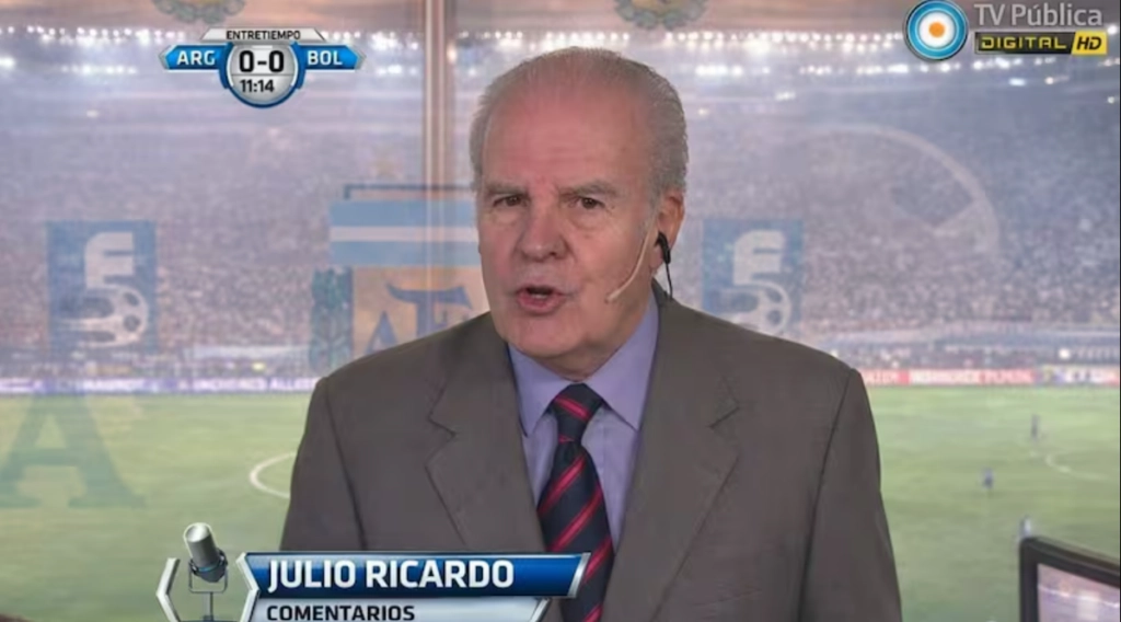 Dueño de una voz inconfundible y un estilo filoso, Julio Ricardo construyó una carrera emblemática. Saltó a la fama como comentarista de José María Muñoz, y desde ahí no paró: fue parte de transmisiones históricas y compartió pantalla con figuras como Víctor Hugo Morales, Marcelo Araujo y Ernesto Cherquis Bialo.