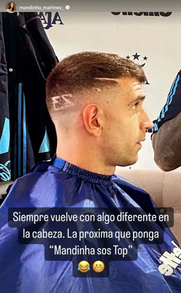 Mandinha Martínez, esposa del Dibu, con quien tuvieron los pequeños, Santiago y Ava, compartió una historia en su cuenta de Instagram donde mostró cómo es la nueva estética del jugador y se refirió a cambio. "Siempre vuelve con algo diferente en la cabeza...", publicó la diseñadora de interiores.