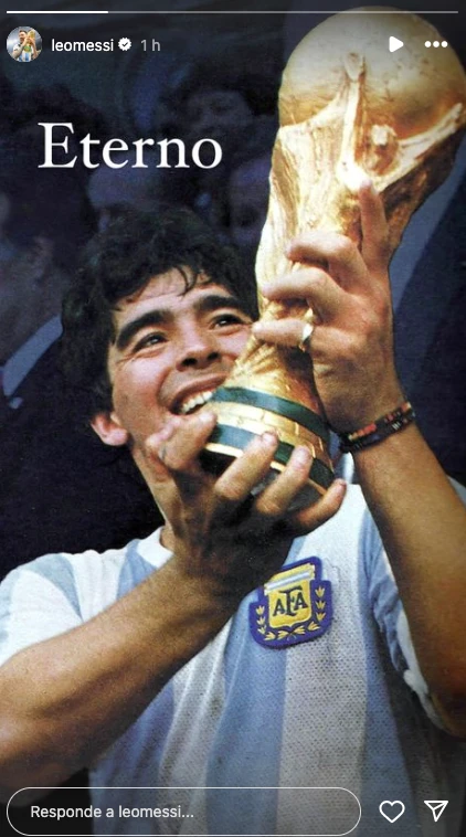 Mediante su cuenta de Instagram, Lionel subió una foto del Diez con la celeste y blanca. Y si bien su muerte sigue doliendo en cada un de los corazones de los argentinos, a quienes tanto hizo feliz, Messi en una sola palabra lo dijo todo.