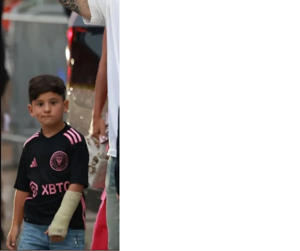 El pequeño de cinco años además llegó con la camiseta suplente del Inter de Miami, en tonos grises con detalles en rosa chicle, distinguiéndose de sus hermanos mayores quienes llegaron con la camiseta oficial. Por su parte Antonella se sumó al la tendencia Barbie y lució un pantalón fucsia que destacó su bronceado.