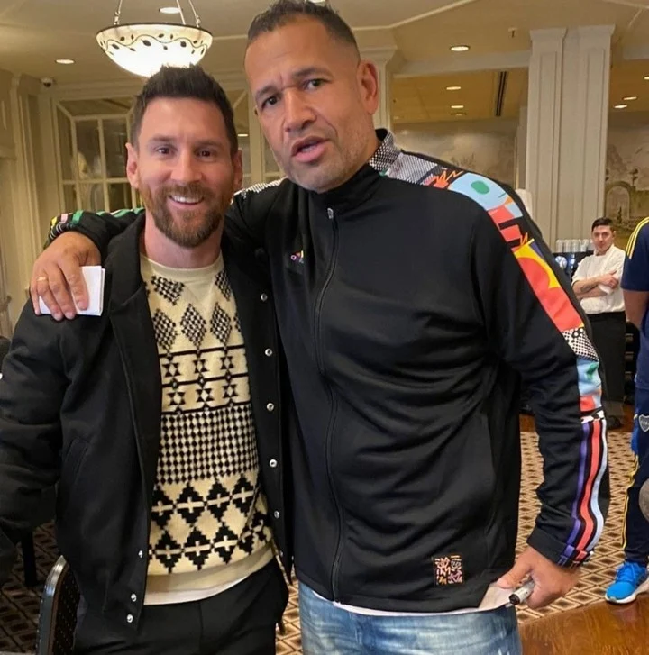 Aunque lo que más llamó la atención del ahora jugador del Inter de Miami, fue el look con el que se presentó en la Bombonera. Su outfit estaba conformado por un suéter crema con rombos negros de distintos tamaños. También, iba abrigado con una campera negra.