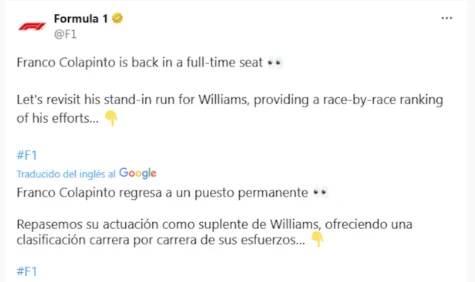 La máxima categoría del automovilismo mundial compartió en sus cuentas de redes sociales un posteo para brindarle la bienvenida a Franco, para lo cual utilizaron algunos tecnicismos muy específicos del ámbito del deporte motor, que muchos no supieron interpretar correctamente.
