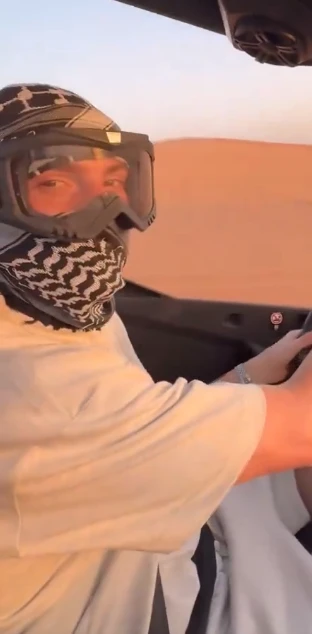 Manejando a una alta velocidad sobre la arena, al Colo se lo vio disfrutando muchísimo junto a Yaz Jaureguy. Con el vino que daba en su cara, debió tomar algunos recaudos para poder transitar por ese sinuoso camino.