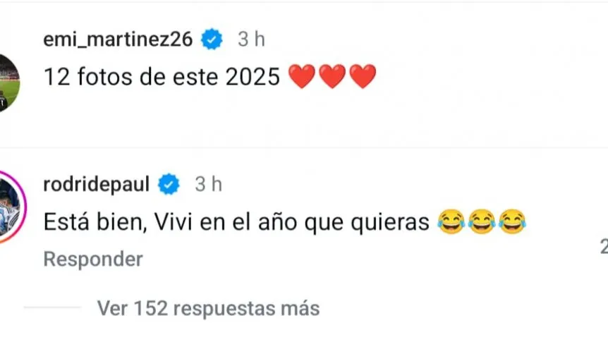 El escrito que puso el portero decía que estaba en el año 2025, algo que obviamente era una equivocación. "12 fotos de este 2025", sostuvo. Fue en ese momento que Rodrigo de Paul aprovechó Para comentarle y reírse de él: "Está bien, viví en el año que quieras".
