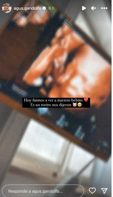 "Hoy fuimos a ver a nuestro bebito, es un torito nos dijeron", escribió Agustina muy emocionada. Haciendo alusión al apodo de su futuro marido, que le dicen así por la intensidad que tiene a la hora de jugar y comparándolo con la garra de un toro.