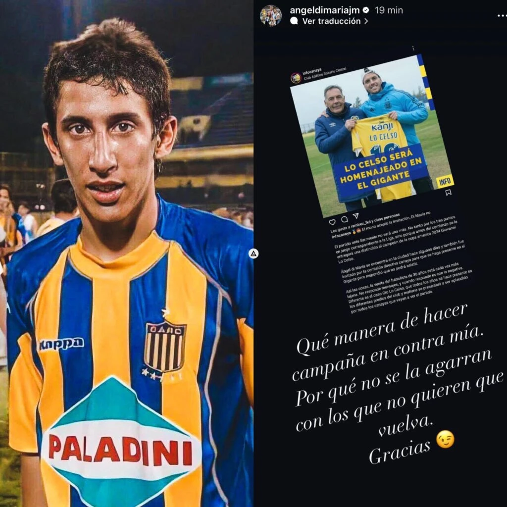 Fideo no se esperaba para nada ser criticado por el entorno de Rosario Central. Una cuenta de Instagram que sube contenido del club expresó que "Lo Celso aceptó la invitación, Di María no". Esto hizo que el jugador saliera con los tapones de punta a aclarar todo.