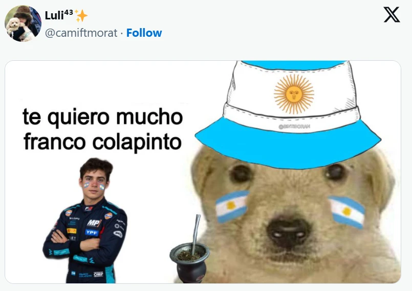 El anuncio de la escudería francesa se difundió en plena madrugada pero desde el minuto uno las redes se revolucionaron con divertidos memes, reacciones y un sinfín de expresiones de los fanáticos, emocionados porque el regreso de Colapinto a las pistas es un hecho y tiene fecha concreta.