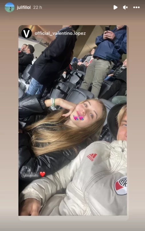 Los chicos blanquearon que están saliendo hace unos días, cuando Valentino publicó una foto junto a Juli en el estadio de Núñez en sus historias de Instagram y ella la compartió en sus respectivas redes, con corazoncitos flechados, toda una declaración pública.