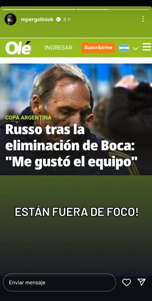 “Ya es momento de hablar seriamente del presente. Aunque duela o moleste, es el peor ciclo”, publicó en un posteo donde cuestionó la falta de resultados y dirección futbolística. También ironizó las declaraciones de Russo, quien se mostró conforme con el rendimiento en la reciente derrota: “¡Están fuera de foco!”, lanzó con dureza.