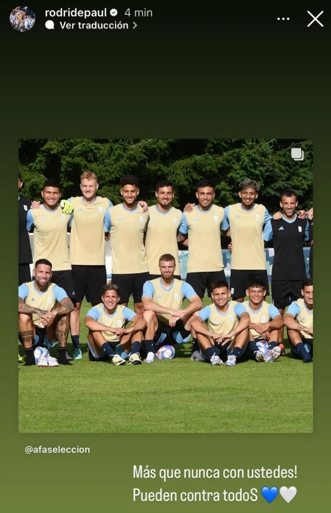 Otros integrantes de la Scaloneta que salieron con los tapones de punta son Nicolás Tagliafico y Rodrigo de Paul. "Saliendo del circo, ¿vamos a hablar del motivo por el que se suspendió o nos vamos a seguir haciendo los bolu...? Si hubiese sido al revés ni me imagino lo que estarían diciendo", escribió el defensor en su cuenta de X. Mientras que el ex de Tini Stoessel subió una foto de todo el equipo bajo el mensaje de "más que nunca con ustedes. Pueden contra todoS"
