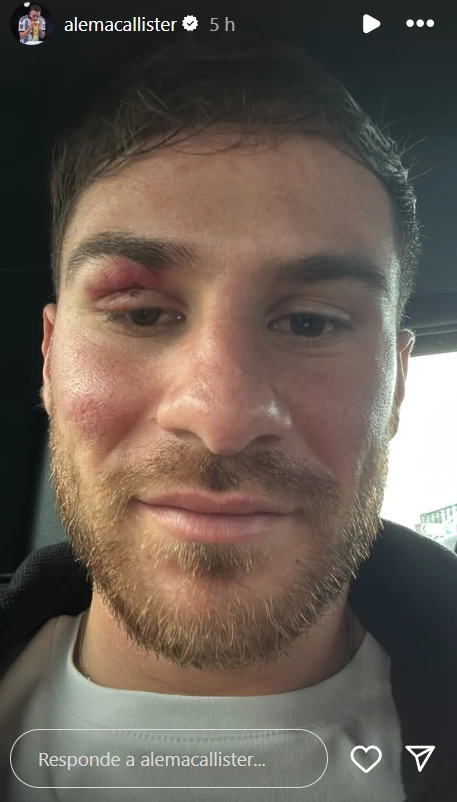 Sin embargo, el campeón del mundo concluyó su batalla ganada con una tremenda “herida de guerra”, los rastros en su cara de un tremendo golpazo de frente que se dio con el egipcio Omar Marmoush. Una jugada de gol que finalmente quedó anulada por fuera de juego y que dejó al colorado con el ojo hinchado.