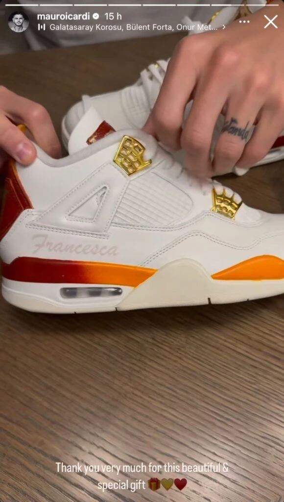 Si bien la línea Jordan se puede adquirir en distintos colores y combinaciones, esta de Mauro es única por lo cuál no estaría por el momento a la venta.”Thank you very much for this beautiful & special gift”, escribió el marido de Wanda sobre la publicación mientras mostraba que, incluso, la plantilla llevaba una foto suya celebrando un gol.