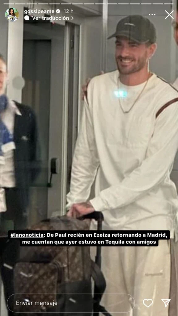 La instagramer utilizó su cuenta de chismes para compartir una foto de Rodrigo de Paul con sus valijas y escribió: "De Paul recién en Ezeiza retornando a Madrid, me cuentan que ayer estuvo en Tequila con amigos". Al parecer, el jugador disfrutó de la noche porteña en un famoso boliche.