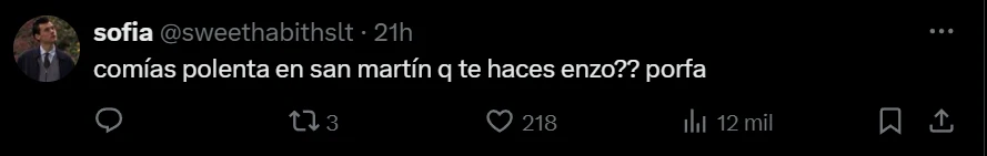 “Enzo no podés ser tan trolo”, “La alfa de la relación” y “Ya sabemos quién manda ahí”, fueron otros comentarios dejaron en las redes sociales después de que una cuenta de tendencias mostrara la foto que compartió Valentina Cervantes de su cita.