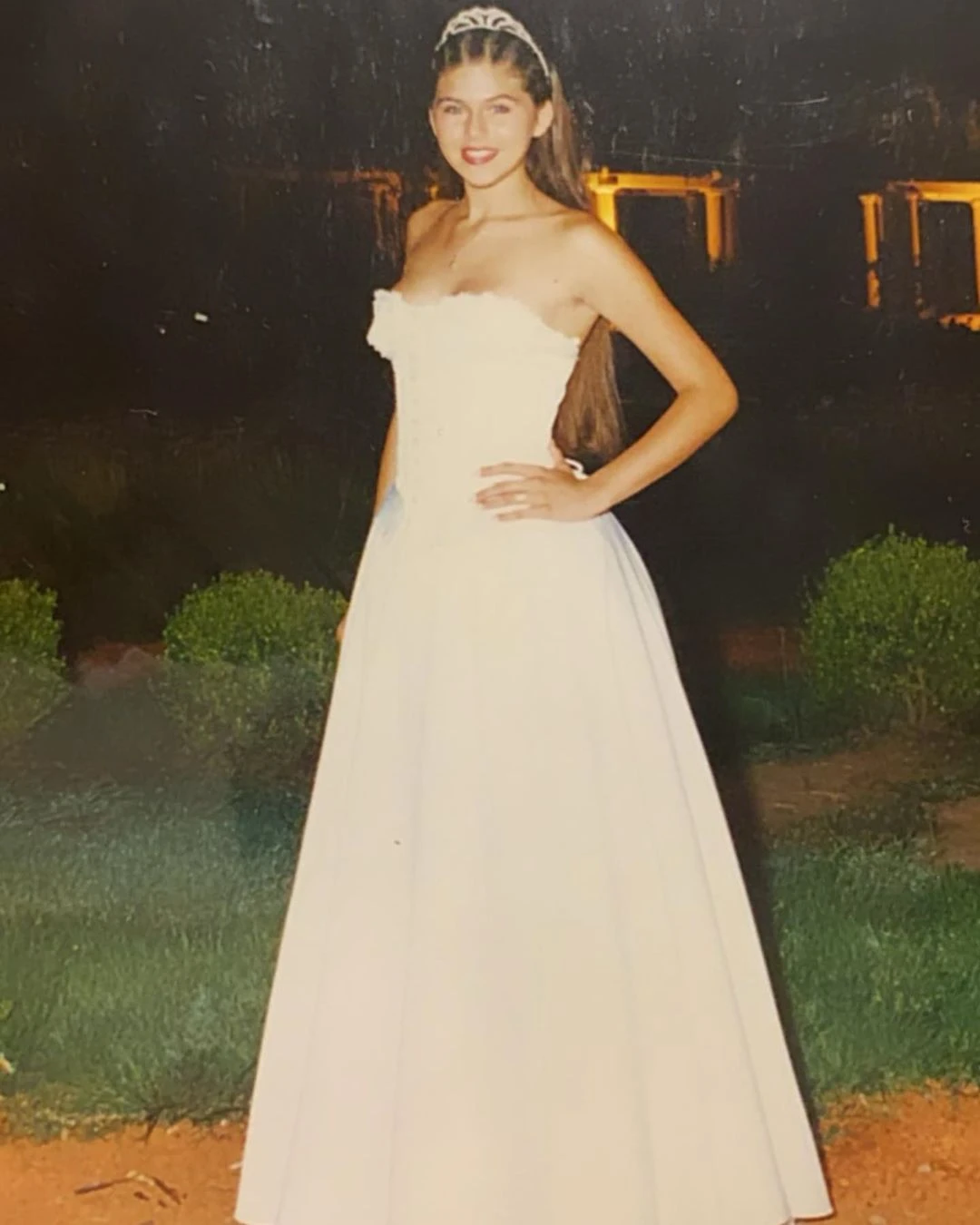 Esta vez sorprendió a sus seguidores con algunas postales de su cumpleaños de 15. En esa oportunidad, la modelo vistió un vestido de dos piezas (corset y falda) color blanco, como si fuera de novia. Con respecto al peinado se destacaba por las trenzas y la corona, al estilo "princesa" .