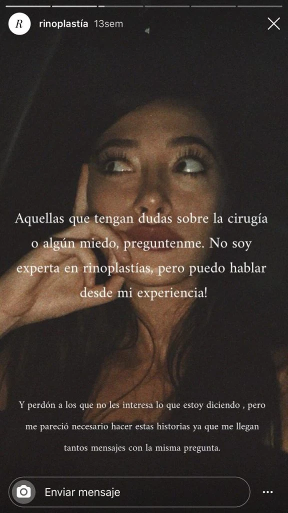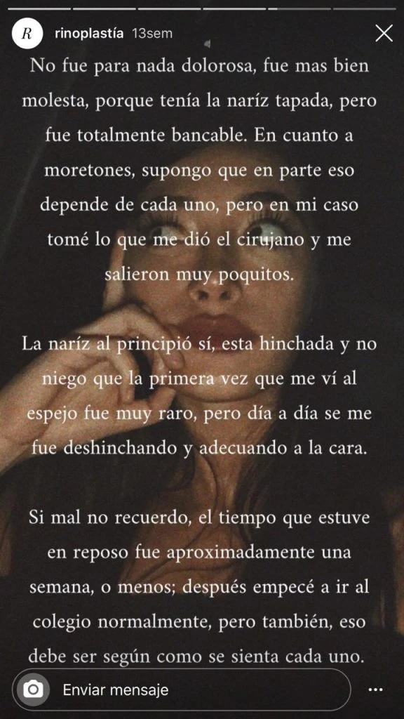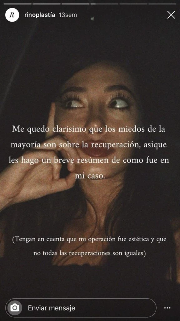“Me quedo clarísimo que os miedos de la mayoría son sobre la recuperación, así que les hago un breve resumen de cómo fue en mi caso. Tengan en cuenta que la operación fue estética y que no todas las recuperaciones son iguales”, reconoció