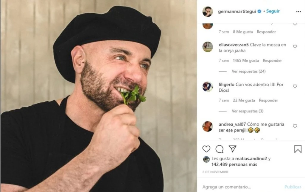 Y no tardaron en aparecer los comentarios de quienes notaron un punto negro, el que sería un pequeño insecto en la oreja de mMartitegui: "Clave la mosca en la oreja", "¿Todos vimos la mosca, verdad?", "¿Un bicho en la oreja?", "¡Quién pudiera ser la mosca!", "La mosca no está en la sopa, está en la oreja del chef", "Quisiera ser mosca para susurrarte todo lo que te haría".