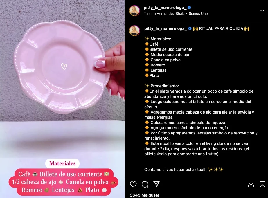 Pitty La Numeróloga compartió en sus redes el rito para atraer abundancia y prosperidad en el hogar en tiempos de Semana Santa. La conocedora del mundo energético enumeró los pocos elementos que se necesitan para el amuleto y contó cómo crearlo en un puñado de pasos muy sencillos.