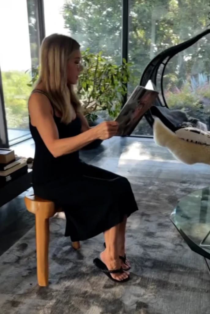 El salón de la casa está decorado con piezas exclusivas, entre las que destaca un llamativo sillón colgante negro que se roba todas las miradas y se convierte en el foco de atención de la estancia. En este espacio, donde la modernidad se combina con el confort, Jennifer Aniston disfruta de momentos de tranquilidad junto a sus perros, Lord Chesterfield, Sophy y Clyde.