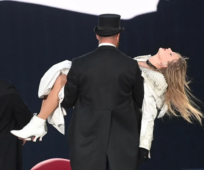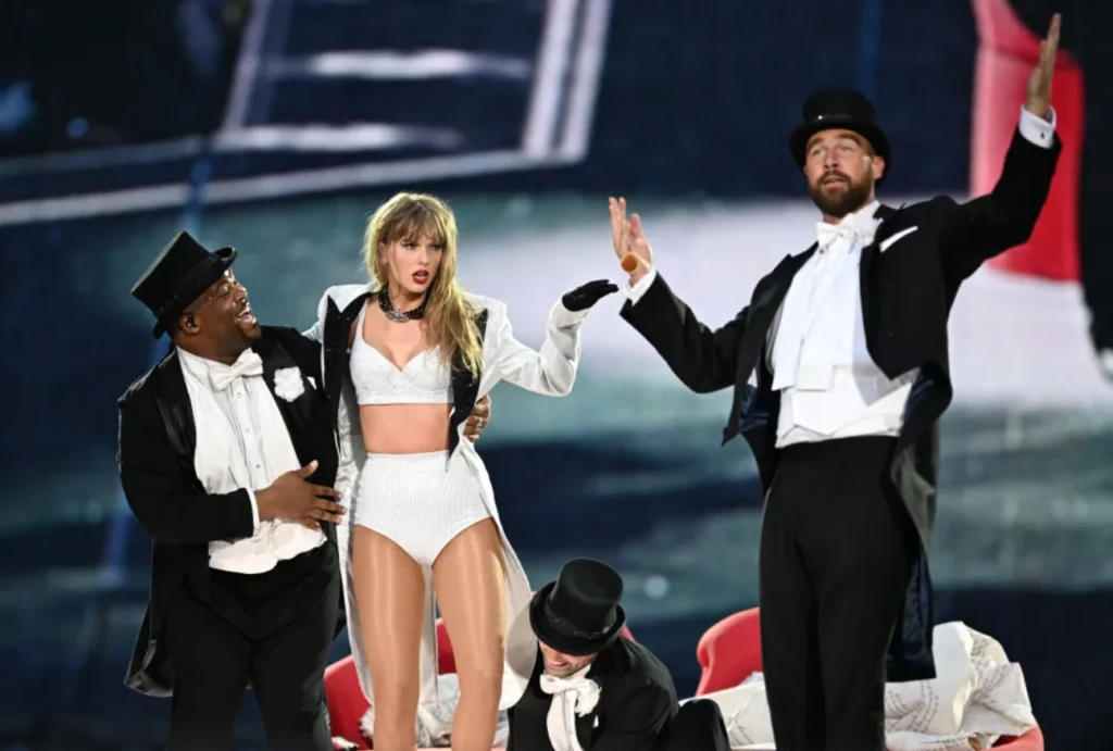 En la primera fecha de Taylor en el mítico estadio de Londres, el público quedó enloquecido al ver a Kelce aparecerse vestido de traje y galera para sumarse al show en un cambio de vestuario en medio de The Eras Tour.