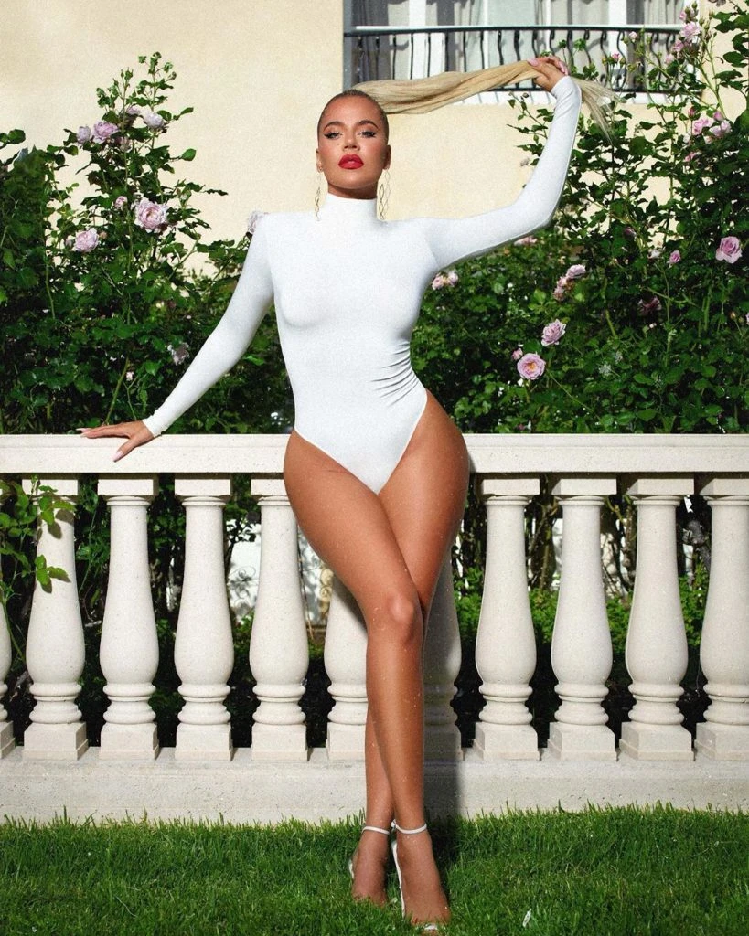 Esta semana, Khloe subió a su cuenta personal de Instagram una foto muy fiel a su estilo: vistió un enterito con estampado de leopardo que forma parte de su marca de ropa Good America y su rubio cabello suelto.