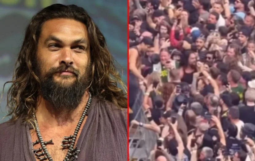 Y entonces sucedió: Momoa tiró el guión, saltó la valla y se hundió en el pogo como un fan más. Empujones, cabeceos, cuernos en alto. Del protocolo a la locura total en un solo salto; el clip voló por redes y el actor hawaiano se convirtió en tendencia mundial.