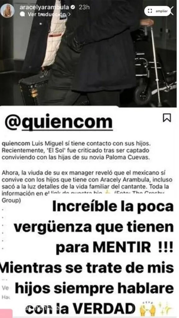 Y es que, todo se dio cuando la esposa del ex manager e íntimo amigo de Luis Miguel contó que el cantante si veía a sus hijos y se hacía cargo de ellos. Fue entonces que Araceli Arámbula decidió romper el silencio y contar la verdad.