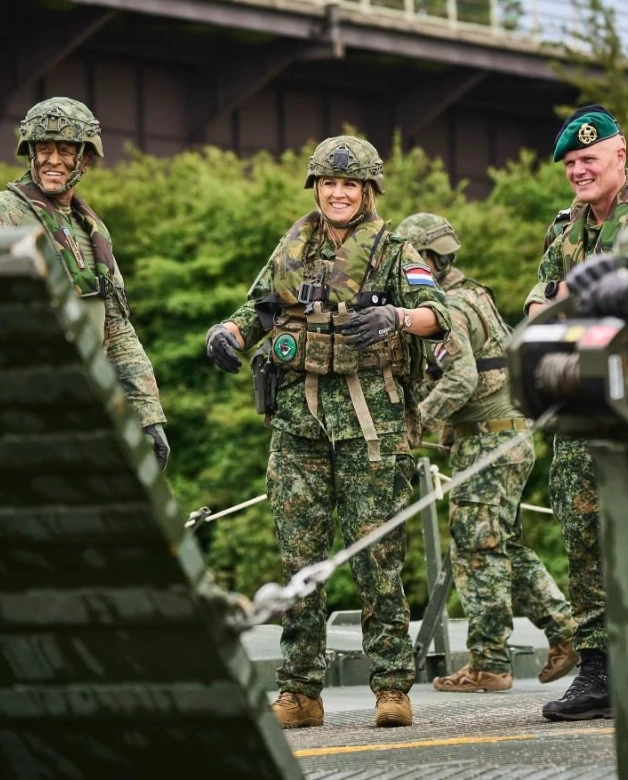 "El Regimiento de Ingenieros es una parte de las fuerzas armadas que está entrenada para despejar obstáculos y construir infraestructura militar como puentes y transbordadores", explicaron fuentes de Países Bajos al publicar una serie de fotos donde se ve a la reina compenetrada en la actividad.