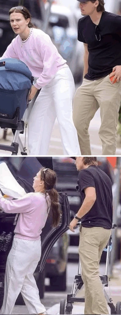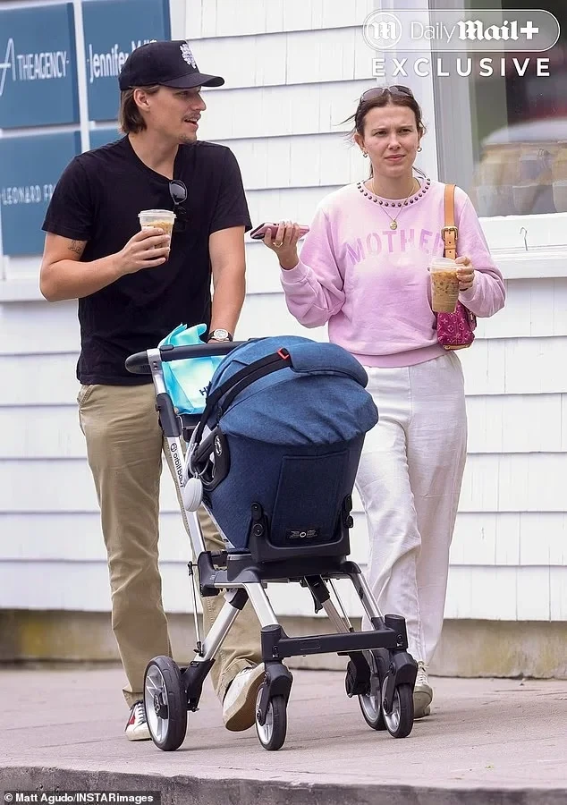 Mientras algunos especulan que el nombre de la niña podría estar inspirado en la difunta abuela de Millie, los padres eligieron mantener la identidad en privado. En otra de las salidas, la actriz fue captada vistiendo una remera rosa, sin maquillaje, mientras disfrutaba un café helado junto a su esposo. Jake empujó el carrito del bebé con una mano y en la otra sostuvo su bebida.