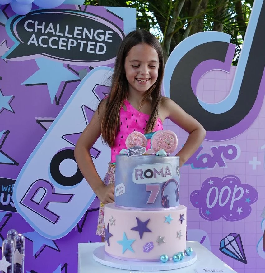 Desde esa faceta de influencer, la modelo y actual instructora de yoga, compartió distintos momentos de lo que fue la celebración de la niña quien eligió como temática para la fiesta TikTok, sumando pizarras para pintar, tortas y ambientación. "Romita festejando con sus amigas del cole", escribió la modelo en su cuenta de Instagram.