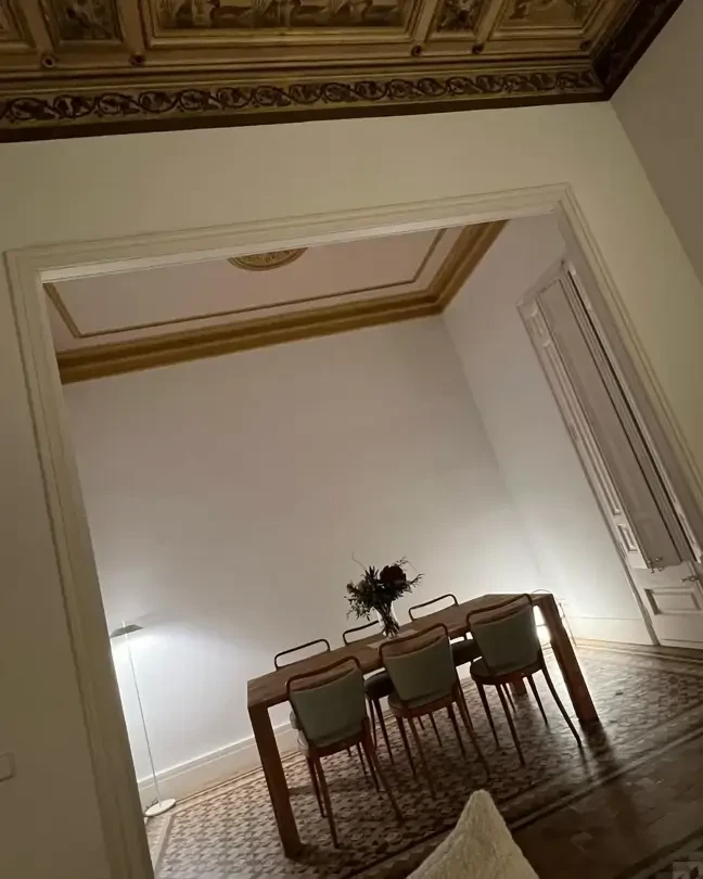 Con una decoración que mezcla lo clásico y lo moderno, su departamento refleja su personalidad y buen gusto. Desde techos altos con molduras elegantes hasta rincones llenos de arte y calidez, cada espacio tiene un encanto especial. Desde su icónico sofá rosa hasta la luz natural que inunda cada ambiente, su nidito de amor no pasa desapercibido.