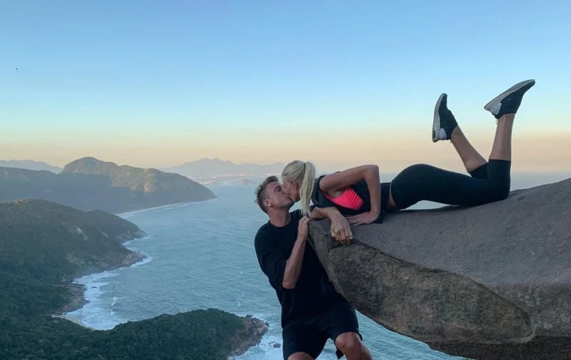 En esta oportunidad, ambos compartieron a través de Instagram sus felices vacaciones en Río de Janeiro con fotos un poco peligrosas ya que se los ve a ambos colgando de un acantilado.