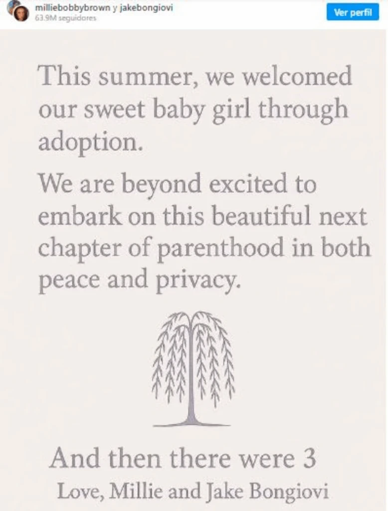 El comunicado oficial apareció en sus redes y fue directo al corazón de los fans. “Este verano le dimos la bienvenida a nuestra dulce niña a través de la adopción. Estamos más que emocionados de embarcarnos en este hermoso próximo capítulo de la paternidad en paz y privacidad. Y entonces somos tres. Con amor, Millie y Jake Bongiovi”, escribieron. El texto acumuló miles de reacciones en minutos.